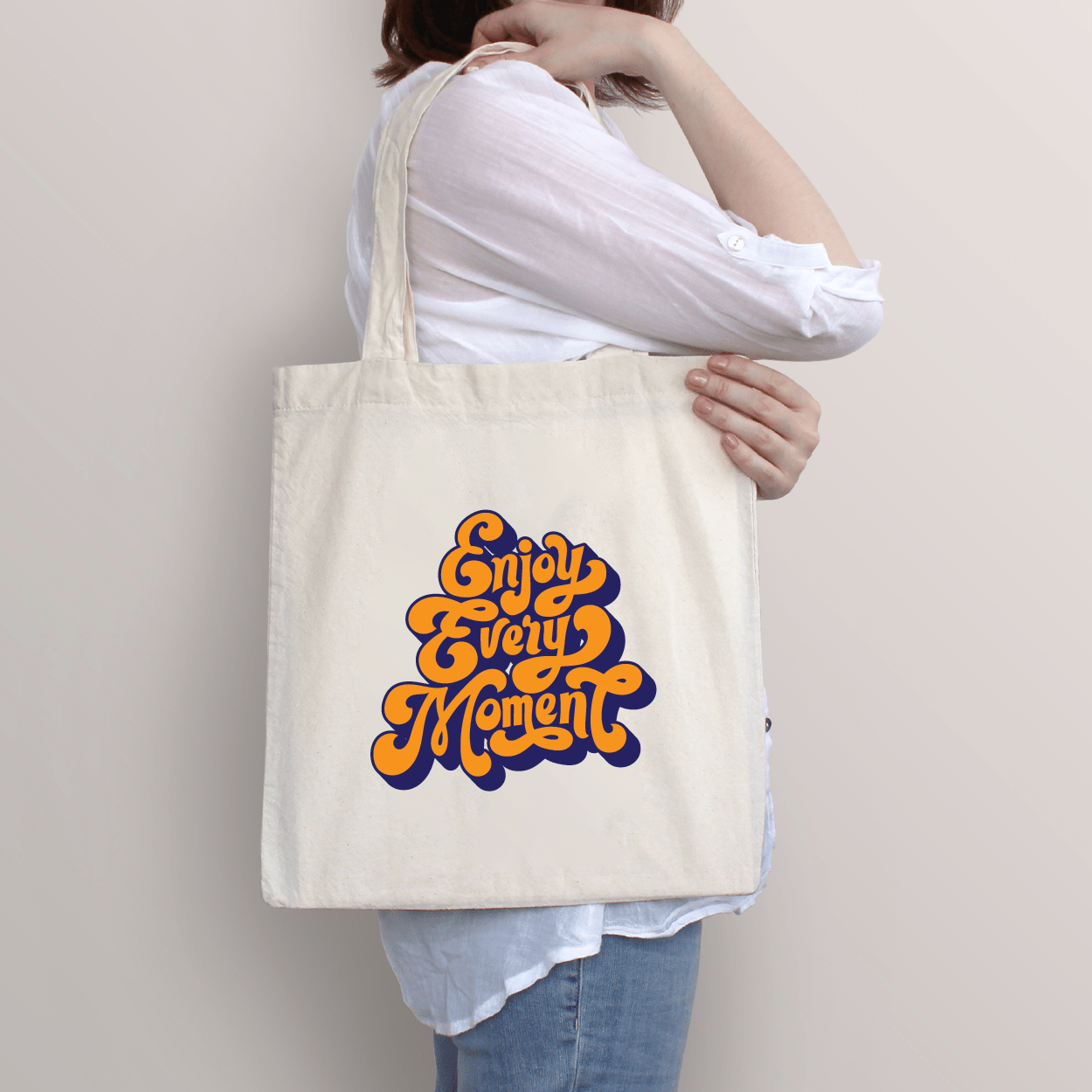 Stylish: Stylish canvas tote bags with inspired unique Enjoy designs and colors, making them a fashionable accessory.