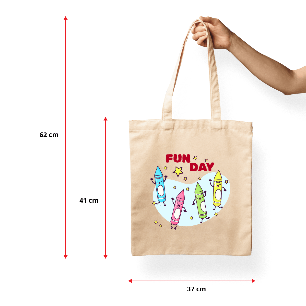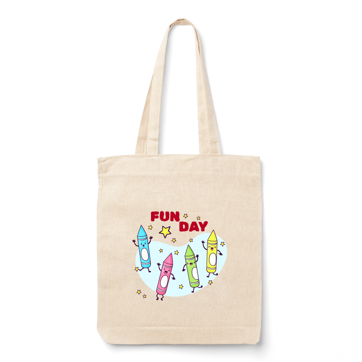Stylish: Stylish canvas tote bags with inspired unique Fun Day designs and colors, making them a fashionable accessory.
