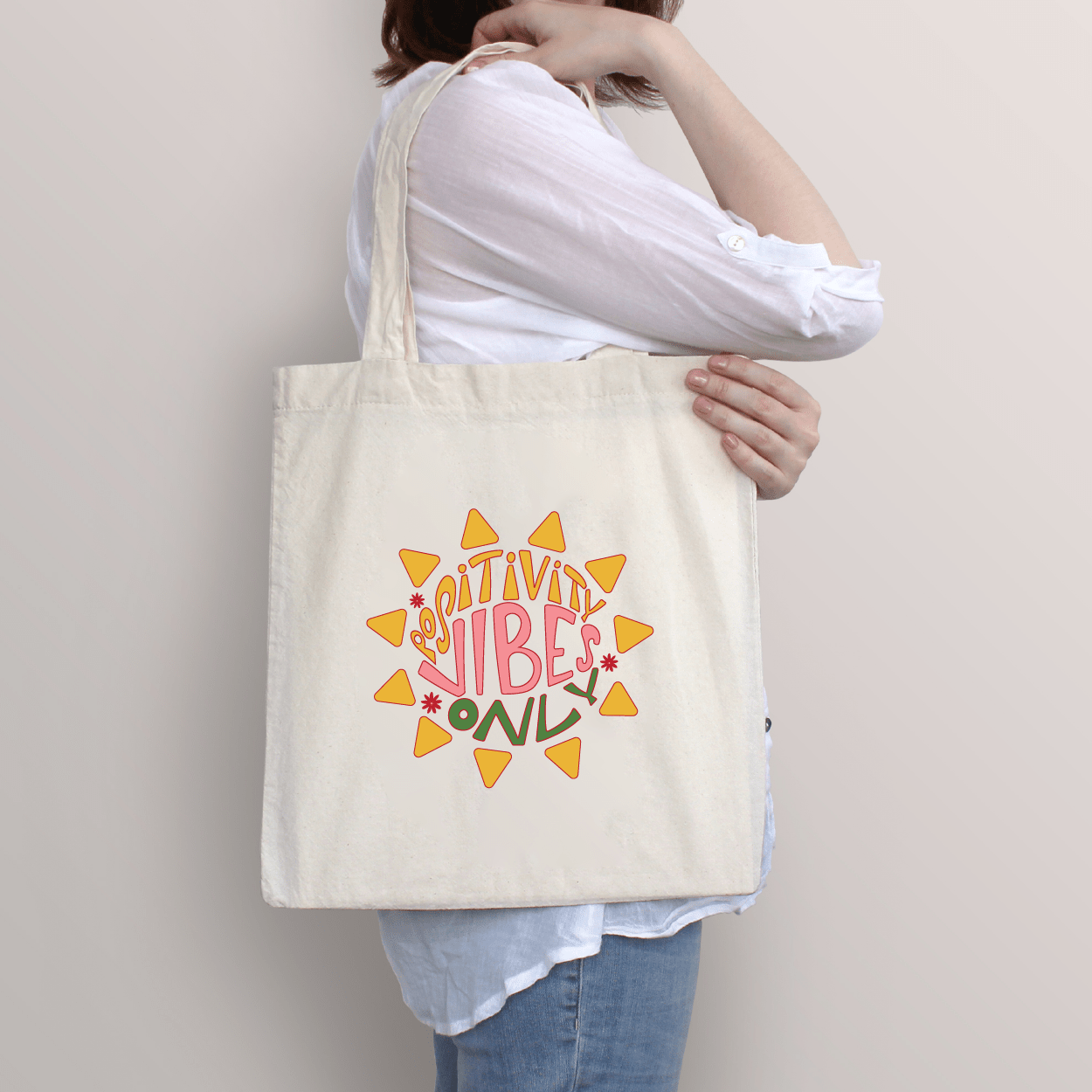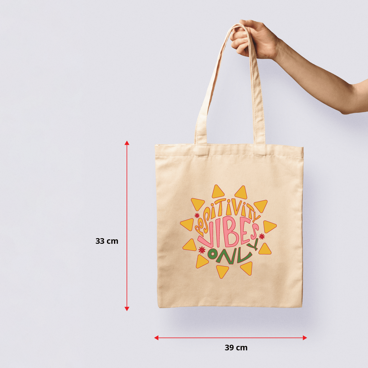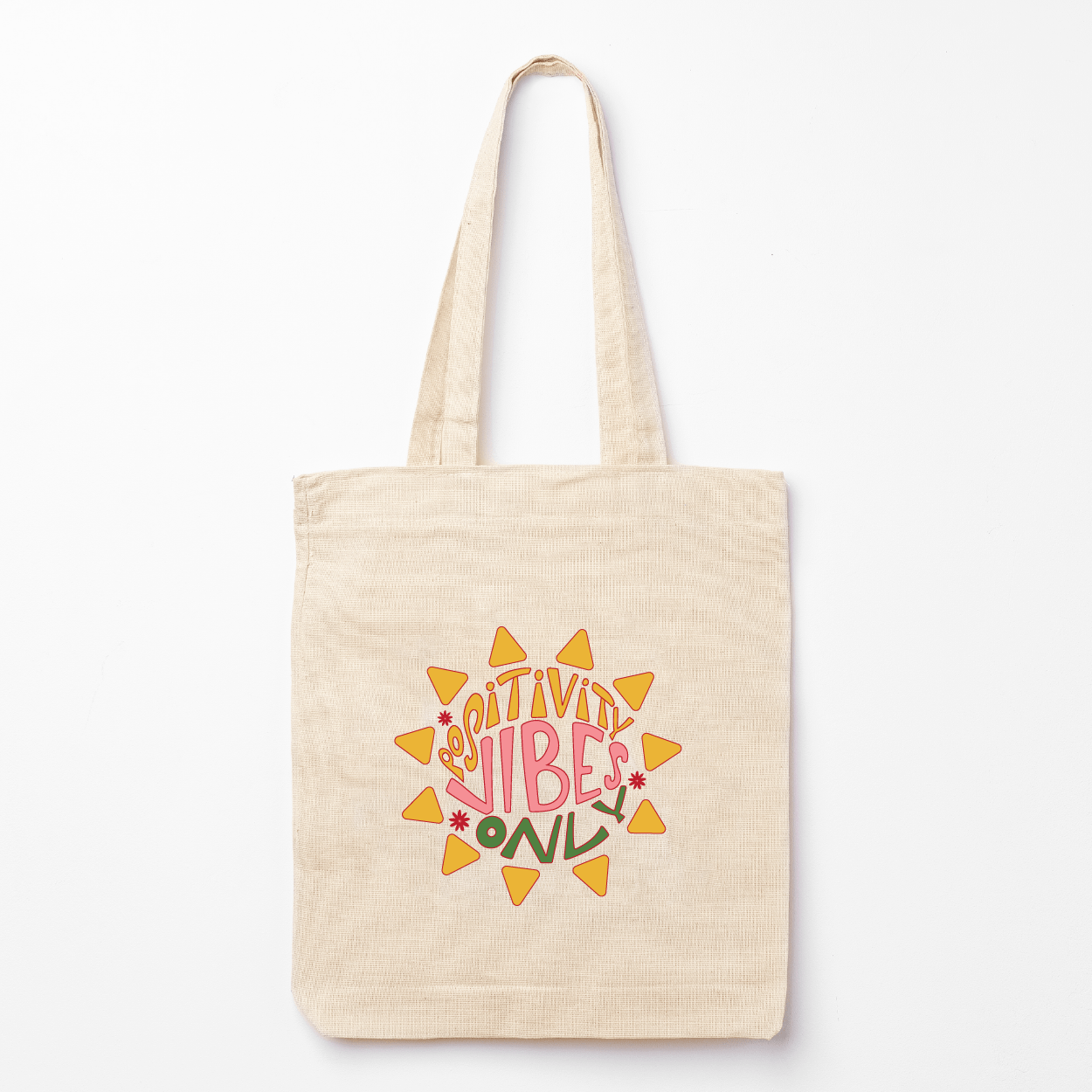 Stylish: Stylish canvas tote bags with inspired unique Positivity Vibe designs and colors, making them a fashionable accessory.