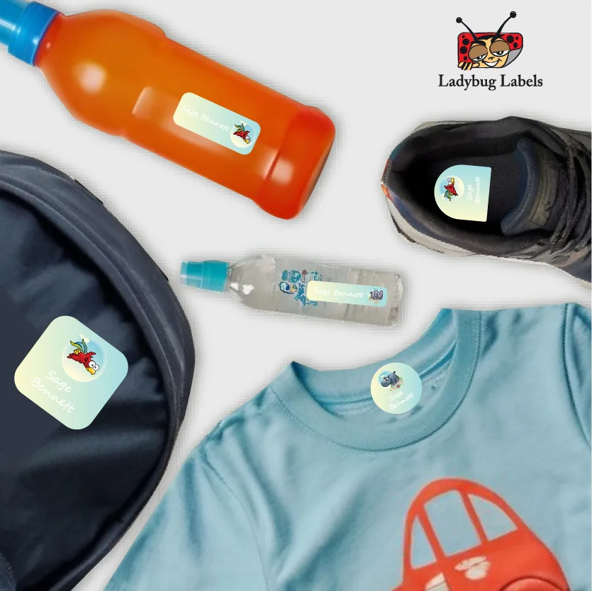 Ajooba Labels is here to stop your trips to the lost and found and to save you money from replacing lost items with our Bubble Hippo theme Name Labels! These kid name labels will keep your child’s belongings organized, accounted for, and personalized. Our durable name stickers are perfect for everything that leaves the house with your child.