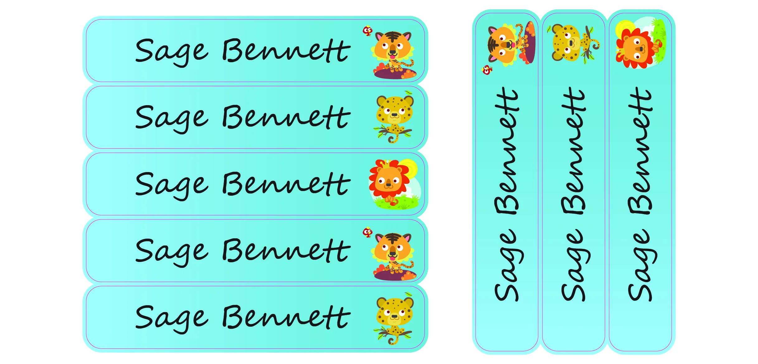 Ajooba Labels is here to stop your trips to the lost and found and to save you money from replacing lost items with our Cheetah theme Name Labels! These kid name labels will keep your child’s belongings organized, accounted for, and personalized. Our durable name stickers are perfect for everything that leaves the house with your child.