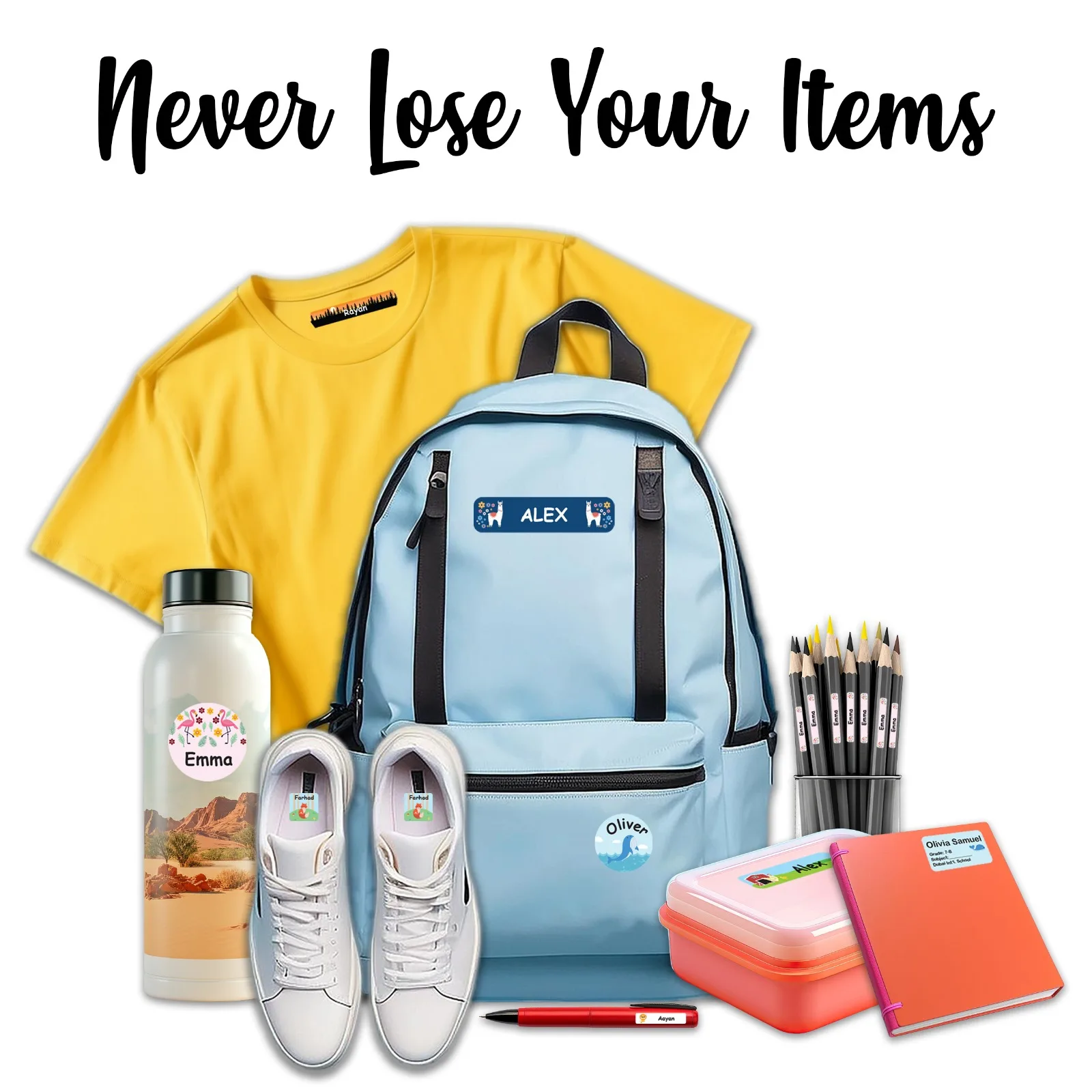 Our custom iron-on clothing labels pack comes with 50 iron-on name stickers for clothing.