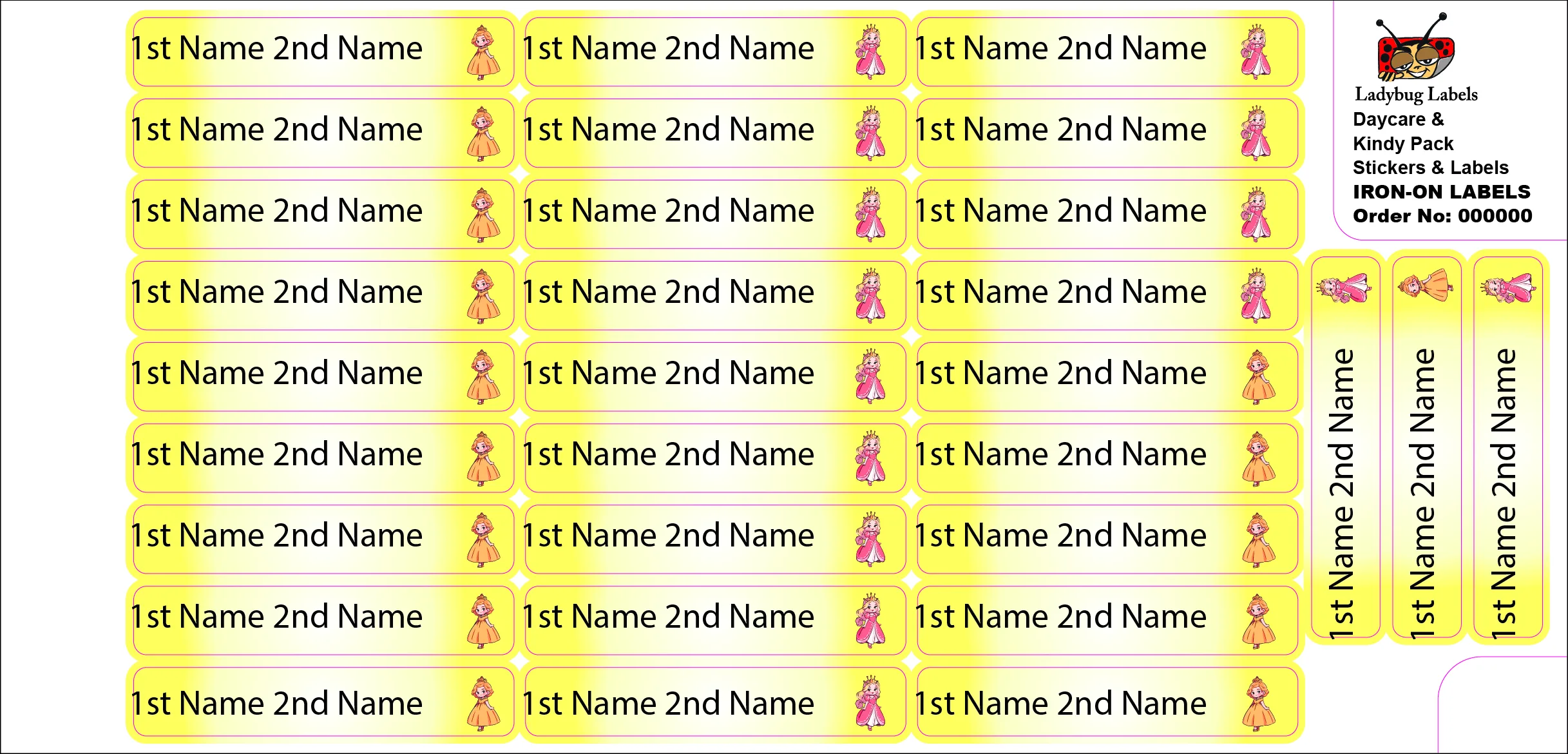 Our Elegant Princess-Pack of 50 custom iron-on clothing labels pack comes with 50 iron-on name stickers for clothing.