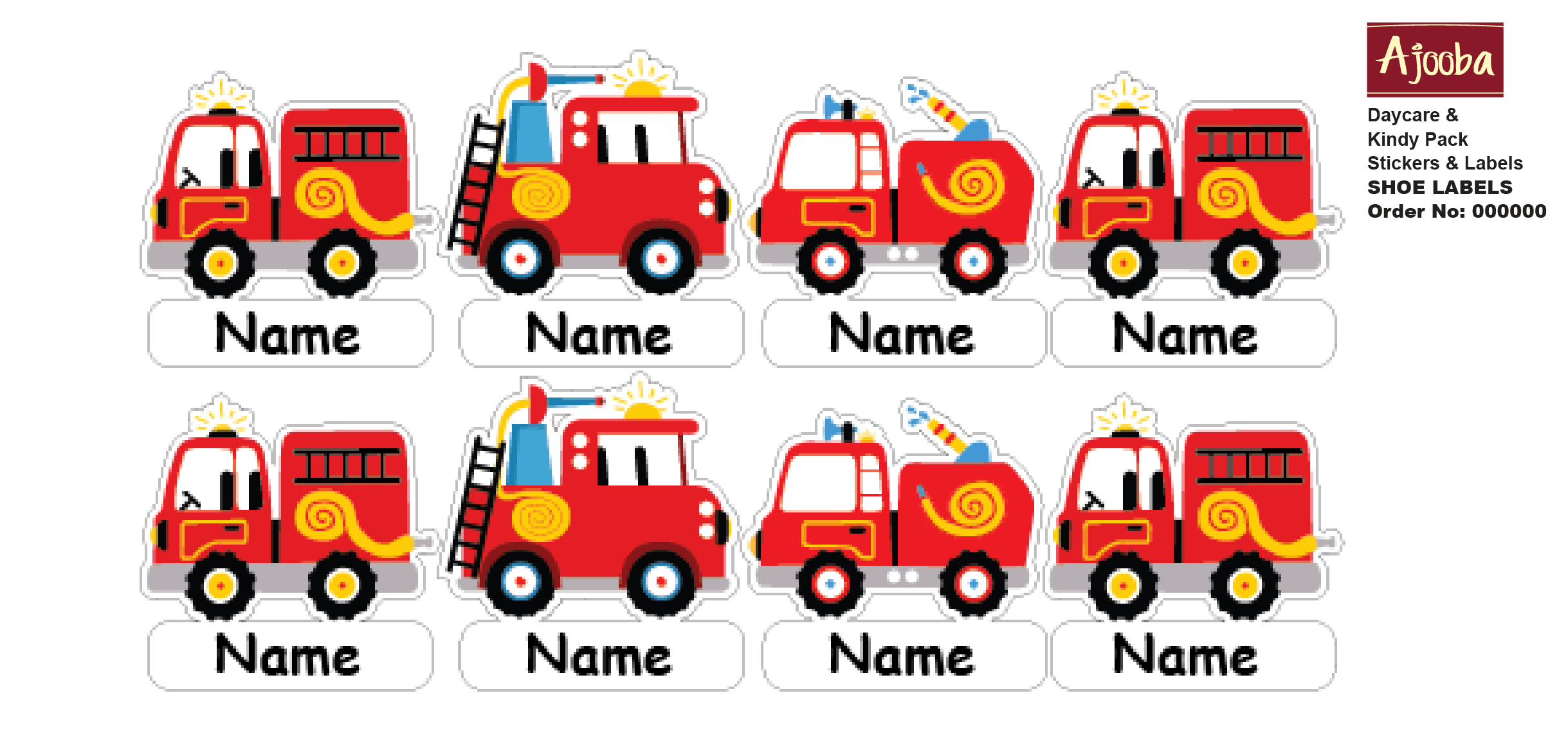 If you have a little one that tends to lose their shoes or get them mixed up with their classmates or peers at school or daycare or even the sand play area, then Ajooba labels has a solution with our Fire Truck Theme Labels! Our custom shoe labels for your kids are the best way to personalize their shoes and keep track of them. These name labels for kids feature Fire Truck design and are available with a extra layer of lamination.