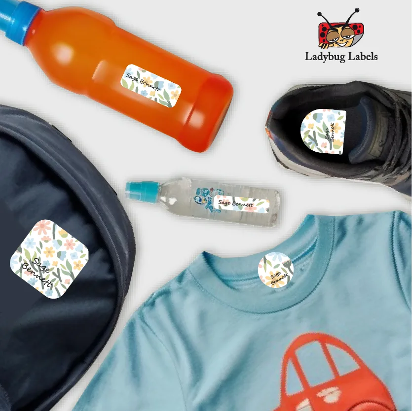 Ajooba Labels is here to stop your trips to the lost and found and to save you money from replacing lost items with our Flower Wallpaper theme Name Labels! These kid name labels will keep your child’s belongings organized, accounted for, and personalized. Our durable name stickers are perfect for everything that leaves the house with your child.