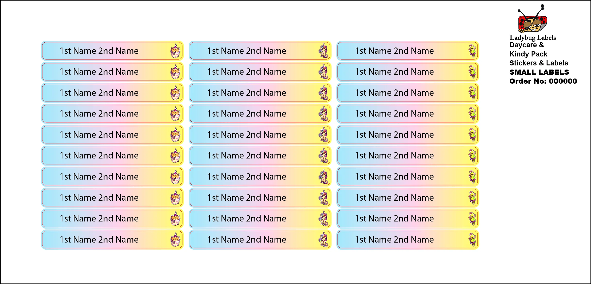 These personalized kid name labels will stick around for the long haul- we’ve designed them to be durable and long-lasting! We make all our kid Kitty Cupcake name labels for camp and school with top-quality materials and use eco-friendly ink. Simply customize with your child’s name and leave the rest to us. With our name stickers for kids, you won’t have to worry about your child losing their belongings again!