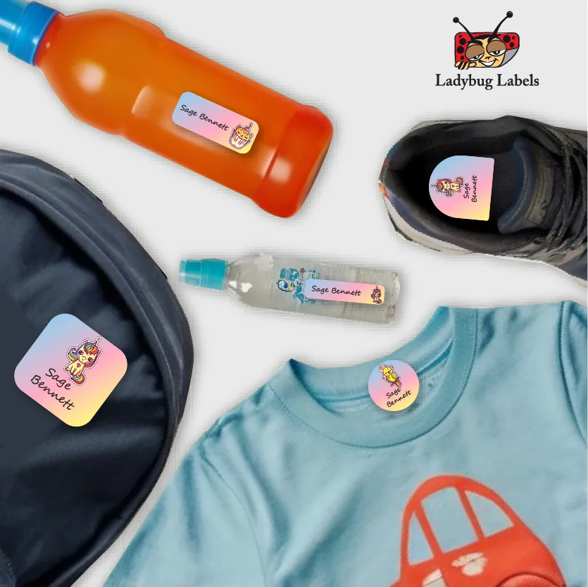 Ajooba Labels is here to stop your trips to the lost and found and to save you money from replacing lost items with our Kitty Cupcake theme Name Labels! These kid name labels will keep your child’s belongings organized, accounted for, and personalized. Our durable name stickers are perfect for everything that leaves the house with your child.