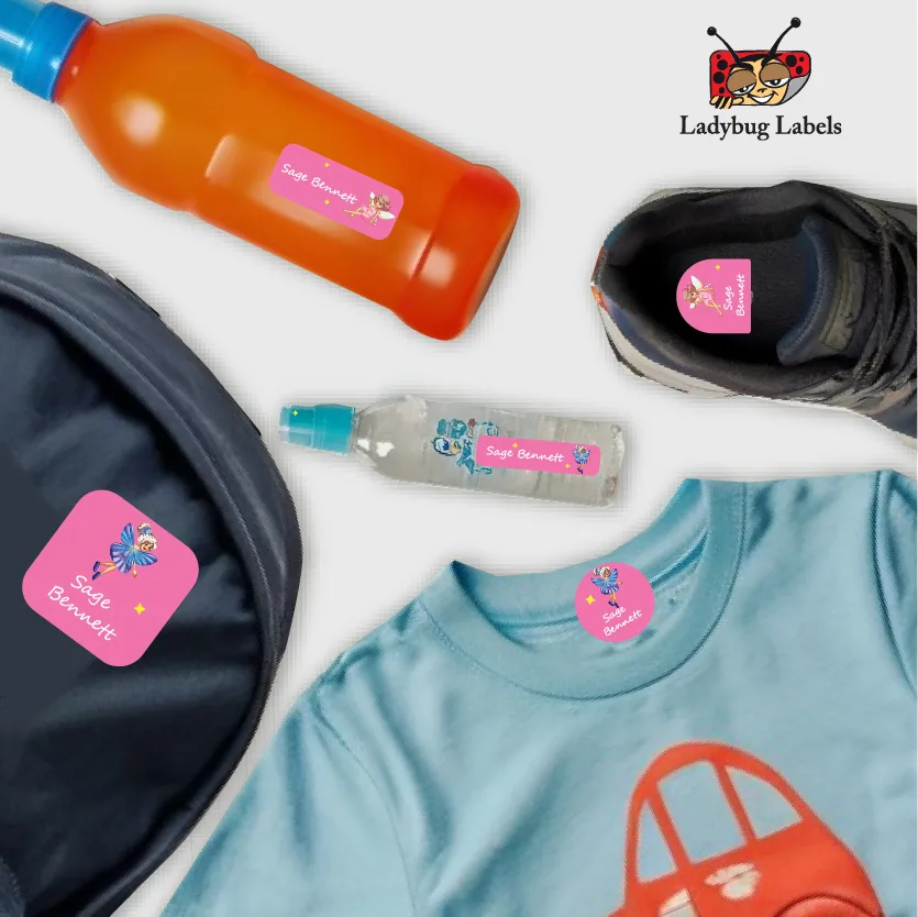 Ajooba Labels is here to stop your trips to the lost and found and to save you money from replacing lost items with our Little Fairy theme Name Labels! These kid name labels will keep your child’s belongings organized, accounted for, and personalized. Our durable name stickers are perfect for everything that leaves the house with your child.