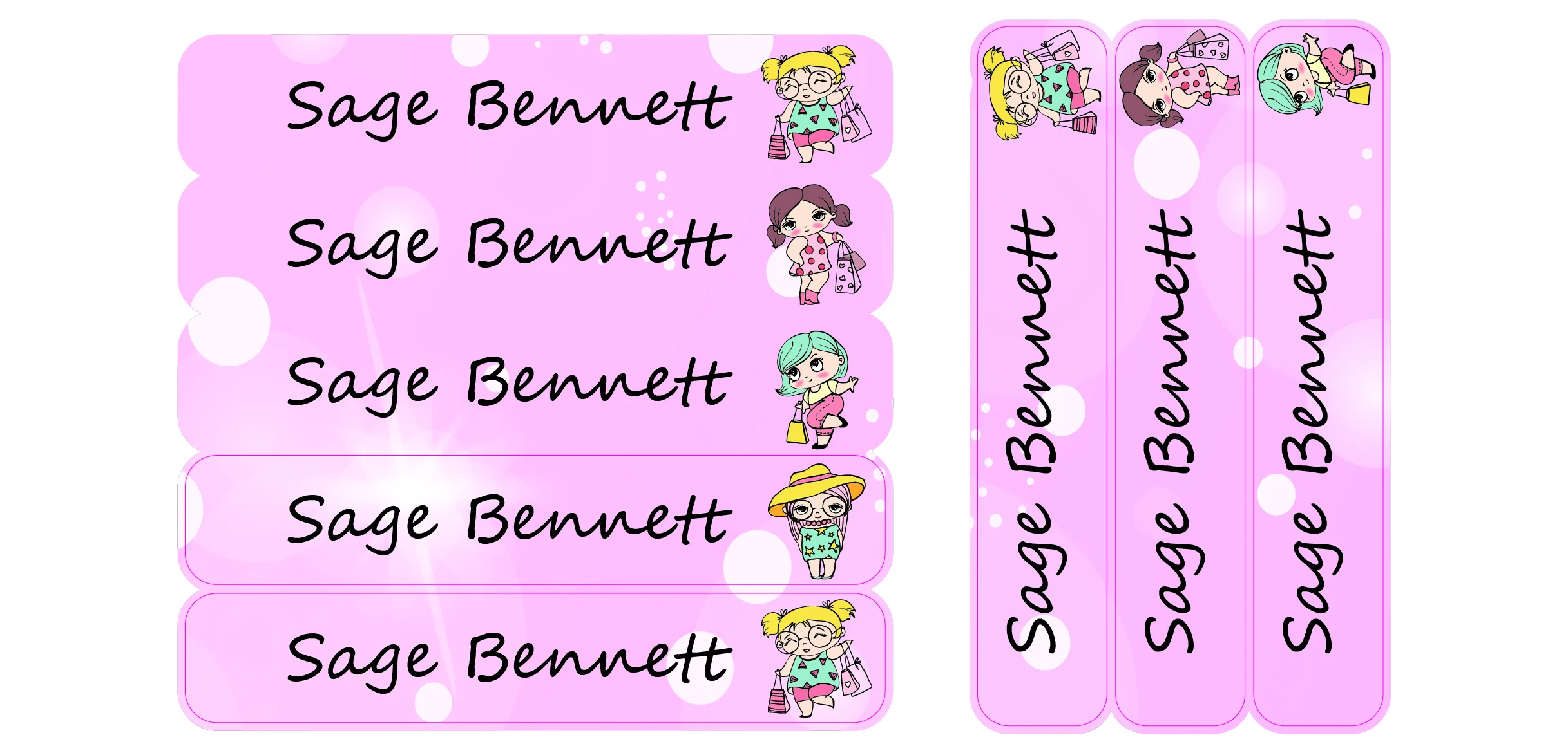 Ajooba Labels is here to stop your trips to the lost and found and to save you money from replacing lost items with our Shopping Girl theme Name Labels! These kid name labels will keep your child’s belongings organized, accounted for, and personalized. Our durable name stickers are perfect for everything that leaves the house with your child.