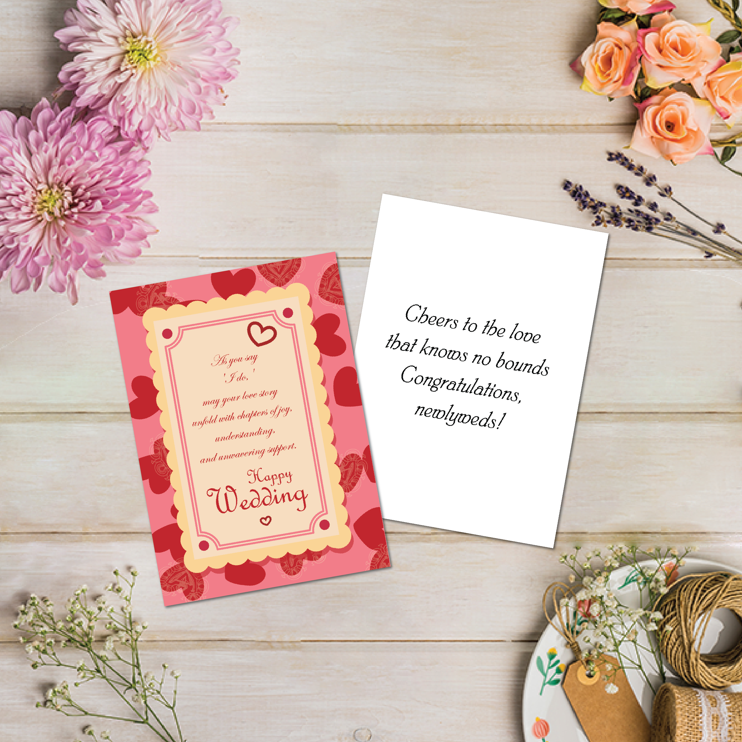 Whether you prefer classic sophistication, modern minimalism, or whimsical charm, our diverse range offers something to suit every couple’s unique style and personality. From delicate floral motifs to elegant calligraphy, each design radiates warmth and sincerity, conveying heartfelt congratulations and best wishes to the newlyweds.